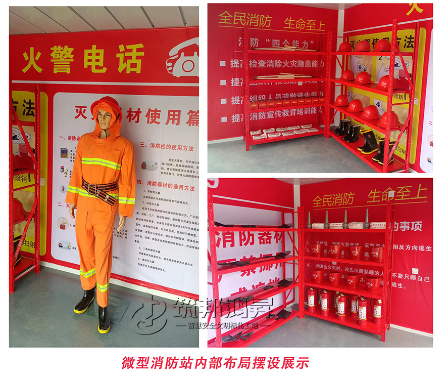 工地微型消防站是以救早、滅小和“三分鐘到場”撲救初起火災為目標,配備必要的消防器材,依托工地消防隊伍。分為消防重點單位微型消防站和社區微型消防站兩類,是在消防安全重點單位和社區建設的最小消防組織單元。【筑邦鴻昇】微型消防站配備滅火器、水槍、水帶等滅火器材;配置外線電話、手持對講機等通信器材;有條件的站點可選配消防頭盔、滅火防護服、防護靴、破拆工具等器材。