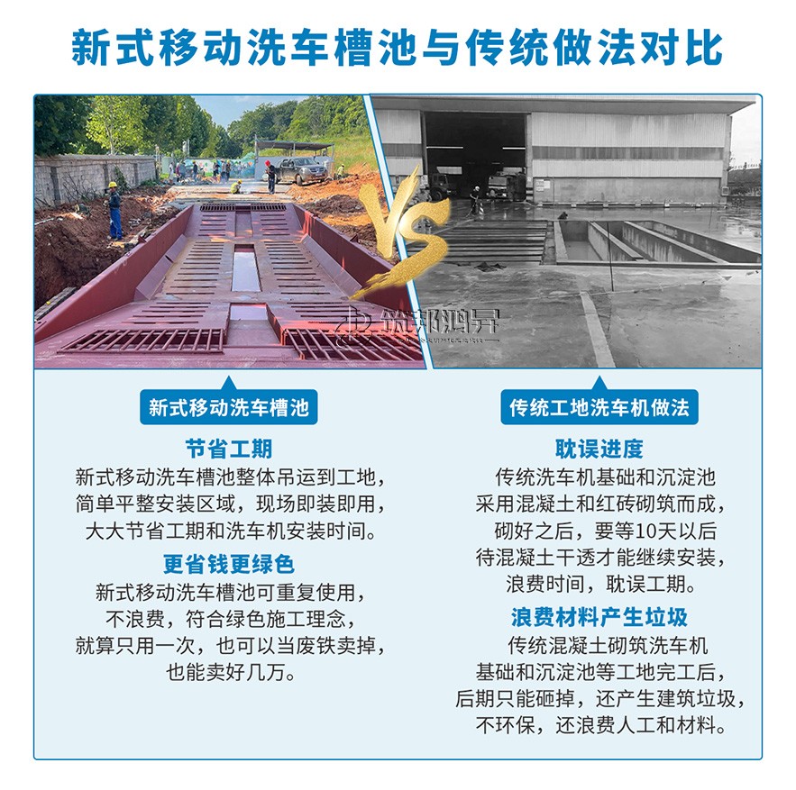 筑邦鴻昇研發鋼結構洗車槽池采用整體設計,整體吊運,用料厚實。替代了之前的工地洗車機下面的水泥基礎,更加牢固方便,節省了大量的基礎砌筑人工和材料,還可以重復使用。如果不需要重復使用;十幾噸重的洗車槽做廢鐵賣,也能賣好幾萬,大大節省了施工時間和成本。鋼結構洗車槽池常規款式有16.6米長和13米長,尺寸可以定制。