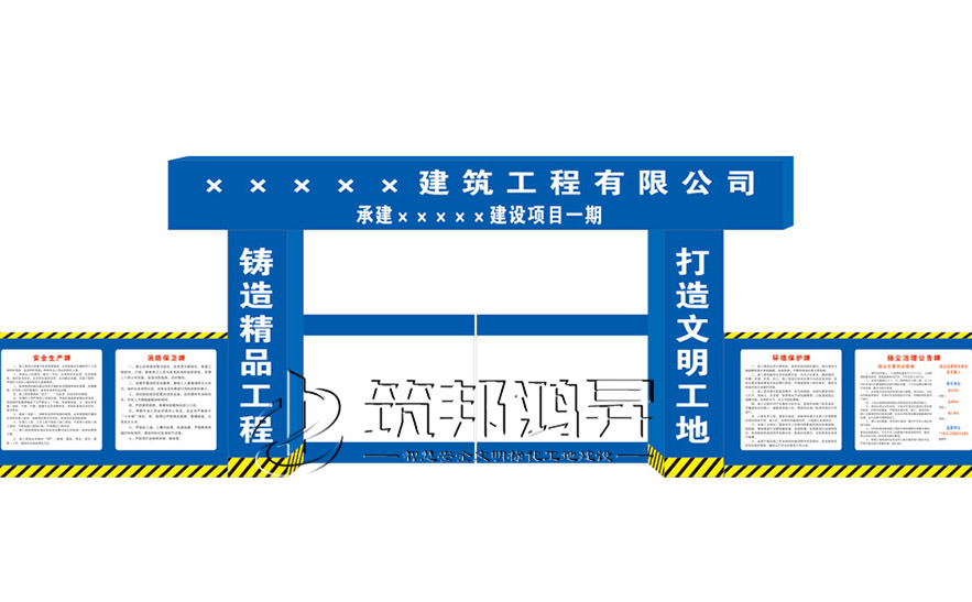 施工現場出入口必須設置工地大門,大門上端設門頭,門頭設置企業標志,整體形象符合施工企業CI要求,整潔大方。