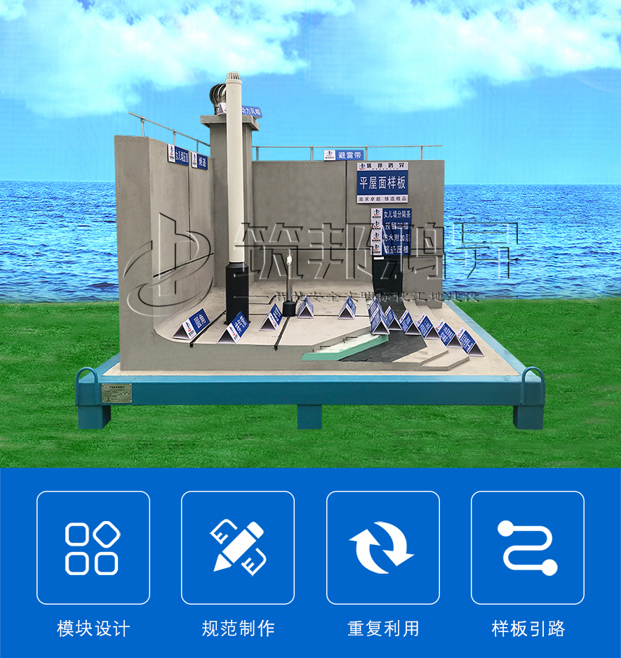 [筑邦鴻昇]平屋面樣板,施工工藝工法質(zhì)量樣板是根據(jù)施工單位的要求和標(biāo)準(zhǔn)制作,展示其在本工程所采用的材料及其質(zhì)量、施工工藝、施工流程、技術(shù)水平及施工質(zhì)量。平屋面樣板,不僅是展示施工工藝、明確施工質(zhì)量、展現(xiàn)施工流程、探索施工技術(shù)的一種有效手段,也是向外界展示工程品質(zhì)和企業(yè)形象的廣告牌。