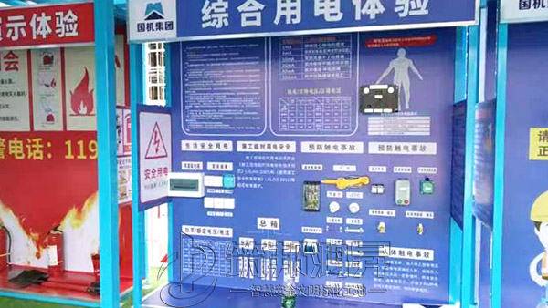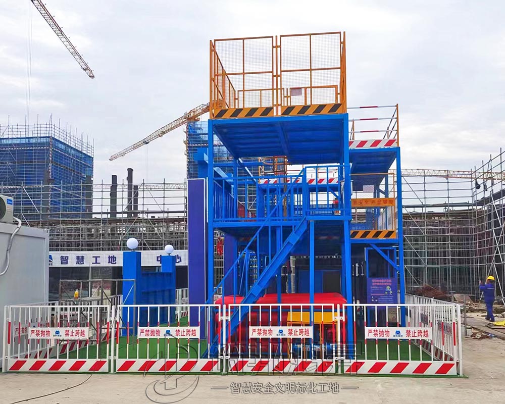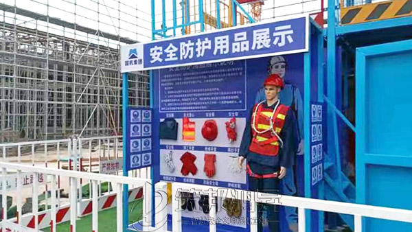 該綜合體搭建三層,整體大氣美觀,各類體驗設備組合可定制,第一層設置了安全防護用品體驗,安全急救體驗,安全著裝展示,滅火器演示體驗,綜合用電體驗,安全帽撞擊體驗,機械傷害體驗,安全帶體驗,洞口墜落體驗,第二層設置了平衡木體驗,垂直爬梯體驗,各類臨邊護欄展示,施工電梯防護門展示,卸料平臺展示。第三層通過爬梯體驗上去,設置了工地護欄和塔吊護欄展示。