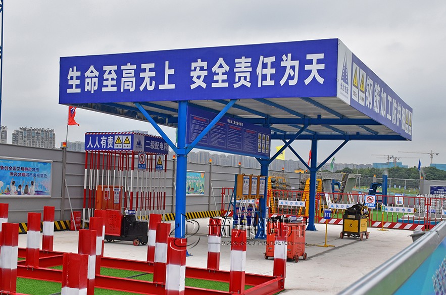 6月21日,2022年長沙市建筑工程質(zhì)量管理和安全生產(chǎn)標準化觀摩會在長沙市市政工程承辦的靳江河西岸綜合整治工程設計施工總承包(EPC)項目舉行。筑邦鴻昇系列文明標化產(chǎn)品助力。