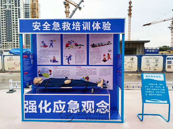 此次合作的安全教育培訓體驗區(qū)建設包括了電焊機操作體驗、安全急救培訓體驗、安全帶使用體驗、平衡木體驗、鋼絲繩使用體驗、欄桿推倒體驗、洞口墜落體驗、重物搬運體驗、綜合用電體驗、滅火器演示體驗、安全防護用品展示體驗、安全帽撞擊體驗等。筑邦安排專車送貨到廈門工地,同時安排了專業(yè)人手迅速到工地加班加點完成安裝。